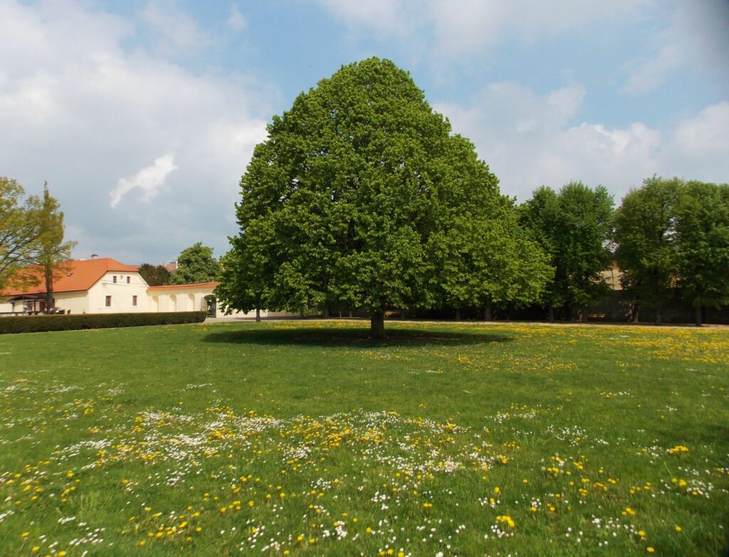 V době letních prázdnin cvičíme v nedaleké zámecké zahradě.